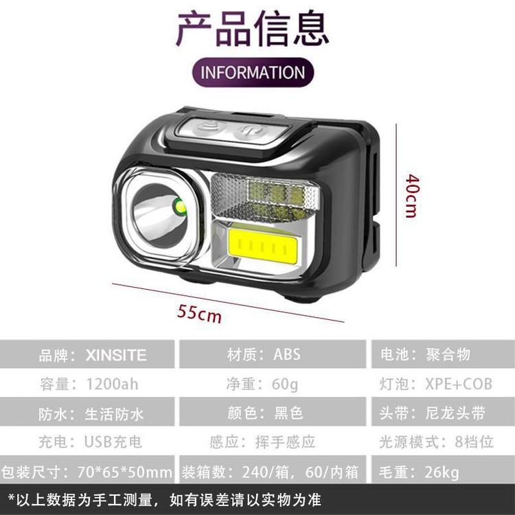 چراغ پیشانی شارژی سنسوردار کد 2089