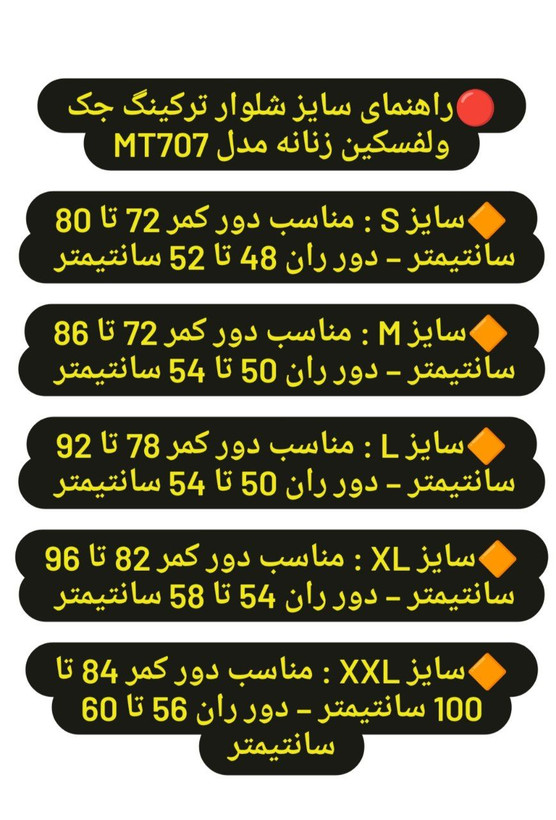 🔴راهنمای سایز شلوار ترکینگ جک ولفسکین زنانه مدل MT707