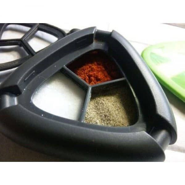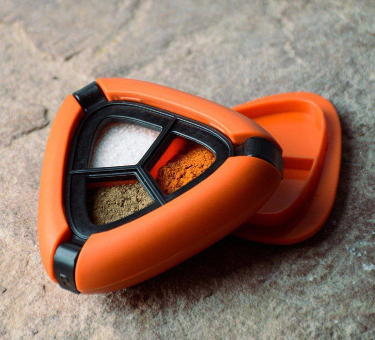 🔴مهمترین ویژگی این وسیله کارایی زیاد با اندازهی بسیار کوچک است. طول و عرض 6 و ضخامت 3 سانتیمتری این وسیله به شما این امکان را میدهد تا بتوانید آن را در کوچکترین محفظهی کوله پشتی خود قرار دهید. این وسیله دارای سه محفظه است که میتوان داخل آنها ادویجات گوناگونی مثل فلفل و نمک بهصورت جداگانه ریخت و هر کدام از محفظهها به صورت جداگانه دارای روزنهی ریزی است که از طریق آن میتوان محتویات داخلی را استفاده کرد. جنس بدنهی این ادویه پاش از پلاستیک است و مقاومت بالایی در برابر ضربه دارد. بهعلاوه کاملا آب بندی شده و در برابر نفوذ آب و رطوبت مقاوم است. واشرهای لاستیکی اطمینان می دهند که نمک ، فلفل و ادویه های شما تازه باقی بمانند و با یک دیگر ترکیب نشوند.