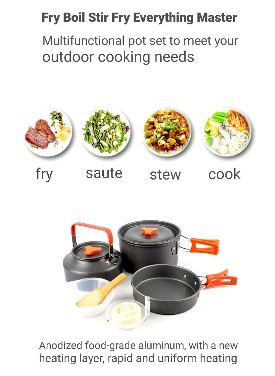 مناسب: ست ظروف دو نفره کوکینگ ست مدل DS310 شامل 11 قطعه به همراه درب ها کاملا کاربردی است که می تواندنیاز هایتان برای پخت و پز در کوهنوردی و طبیعت و فعالیت های گردشگری کاملاً برآورده کند.