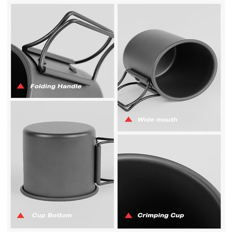 🔴لیوان آلومینیوم دسته دار ساخته شده ازمواد آلومینیوم آنودایز شده و به ابعاد 7.5*8 CM است. وزن این محصول62 گرم (فوق سبک) است و شما میتوانید به راحتی آن را با خود حمل کرده و مورد استفاده قرار دهید. ظرفیت این لیوان 300 میلی لیتر است وقابلیت شستشو آسان دارد. این لیوان دسته های تاشو و پرچ های دسته مستحکم را دارا است