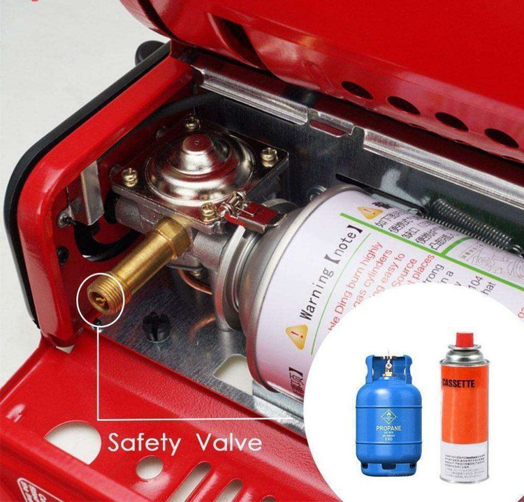 سازگاری با گاز بوتان 220 گرمی و گاز پیک نیکی و گاز 11 کیلوگرمی به وسیله ی شلنگ و رابط و رگلاتور