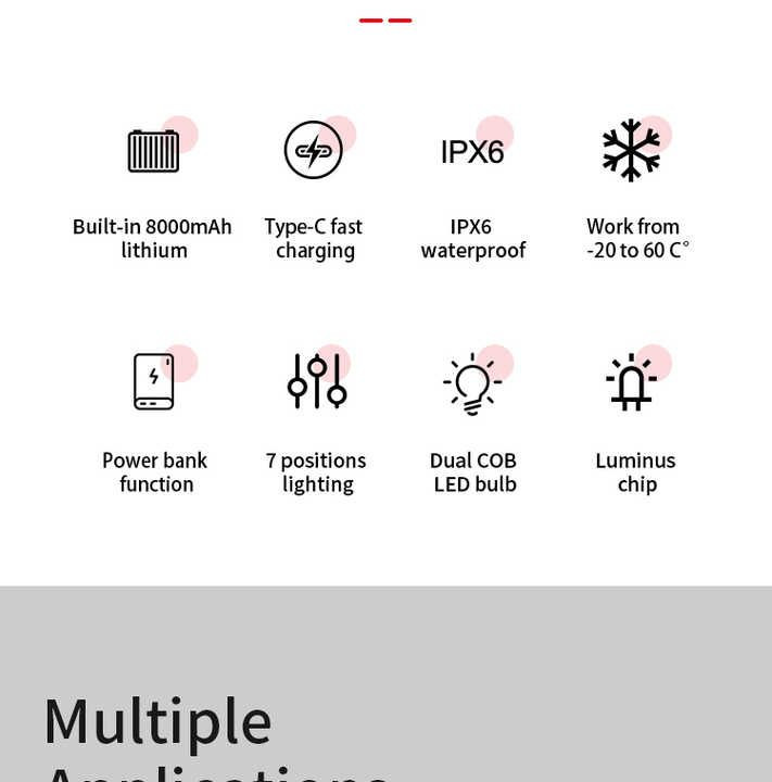 🔹دارای چهار حالت نوردهی در قسمت نورافکن (متوسط، پرنور ، قرمز و قرمز چشمک زن)