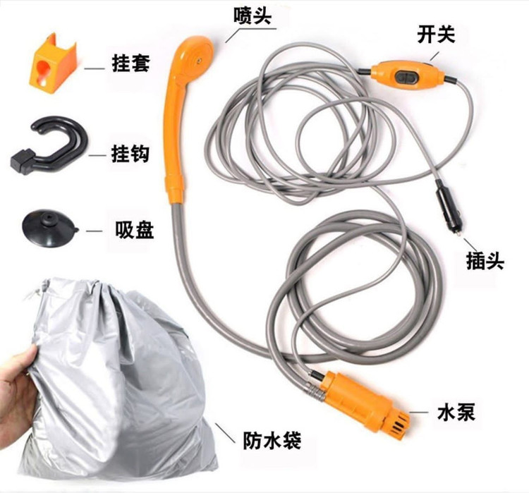 دوش سفری AUTOMOBILE SHOWER SET یک دوش همه کاره و با کیفیت است. دوش صحرایی برقی دارای فندک و با برق خودرو 12 ولت کارمی کند.