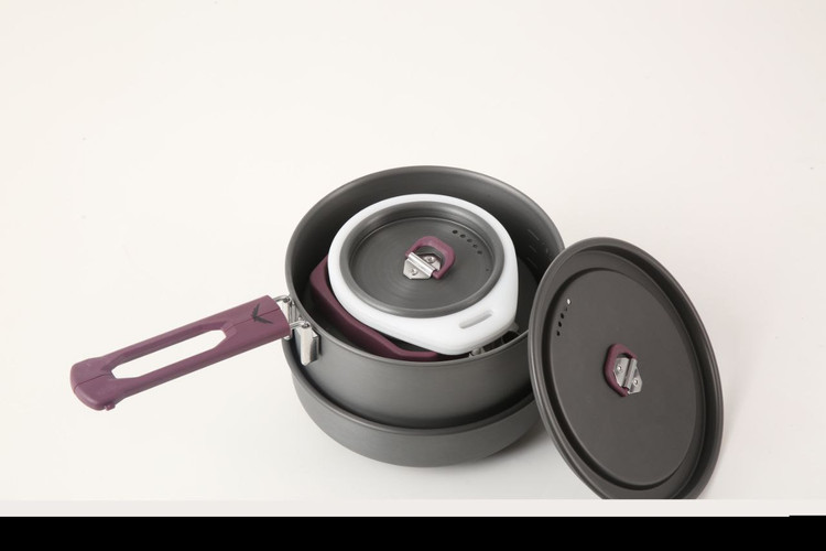این ست قابلمه کوهنوردی از طراحی به صورت چینش تو در تو بهره می برد و به گونه ای است که تمام ظروف داخل یکدیگر قرار می گیرند که به جا گیری فضای کمتر کمک می کنند.