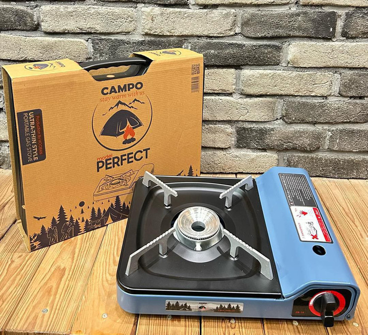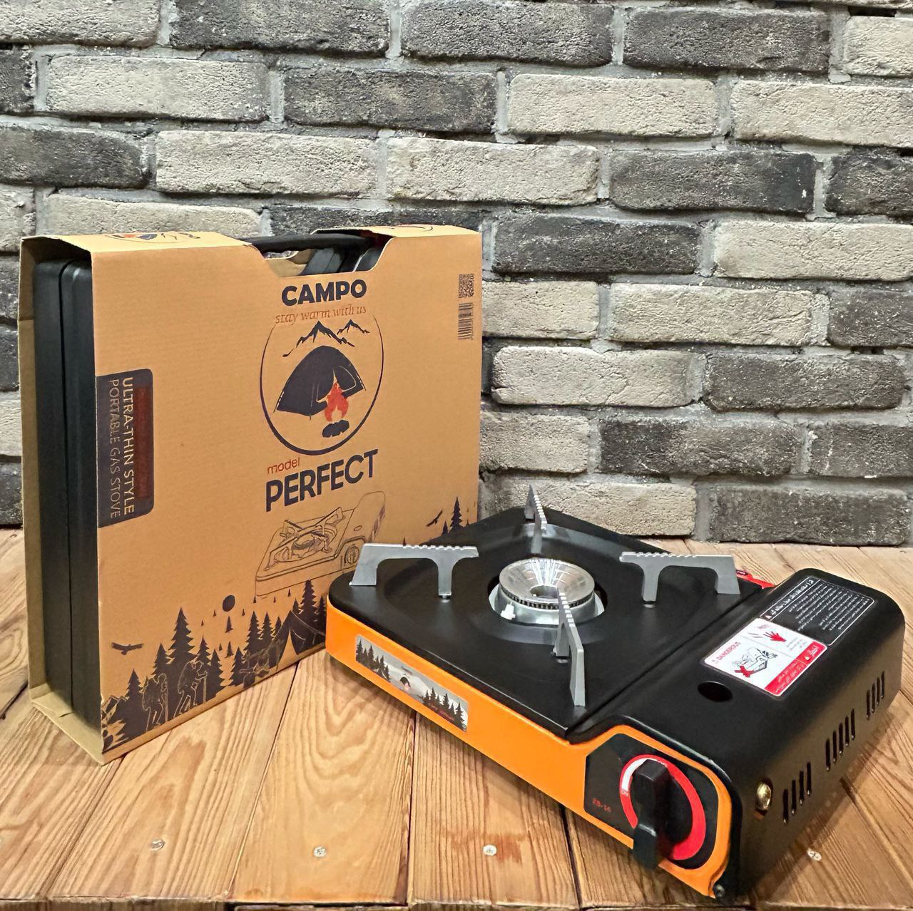 اجاق گاز کمپو مدل PERFECT یک اجاق گاز مسافرتی بسیار با کیفیت و زیبا میباشد که از لحاظ کارایی کاملا شبیه به اجاق گاز خانگی طراحی شده است . این اجاق گاز قابل حمل بوده و با طراحی جمع و جور حمل نقل آن را بسیار ساده میکند. این اجاق دارای یک کیف حمل از جنس پلاستیک بوده که بر خلاف اجاق های بازاری که کیف هایی از جنس پلاستیک ضایعات دارند ، کیف این محصول دارای کیفیت مطبوب بودی و نمیشکند. این اجاق گاز دارای صفحه بزرگ بوده که به مصرف کننده اجازه میدهد از انواع ظروف کوچک و بزرگ برای پخت و پز روی این اجاق استفاده کند.این اجاق کاملا بر اساس استاندارد های روز دنیا طراحی و تولید گردیده است و رنگ سوخت آبی این اجاق نشان از استاندارد بودن سوختن گاز در این اجاق را دارد. این اجاق قابل اتصال به کپسول گاز استوانه ای میباشد که در تما بازار و حتی سوپرمارکت ها و دکه ها یافت میشود. توان حرارتی این اجاق 2.9 KW میباشد که بسیار مناسب و مطلوب است.