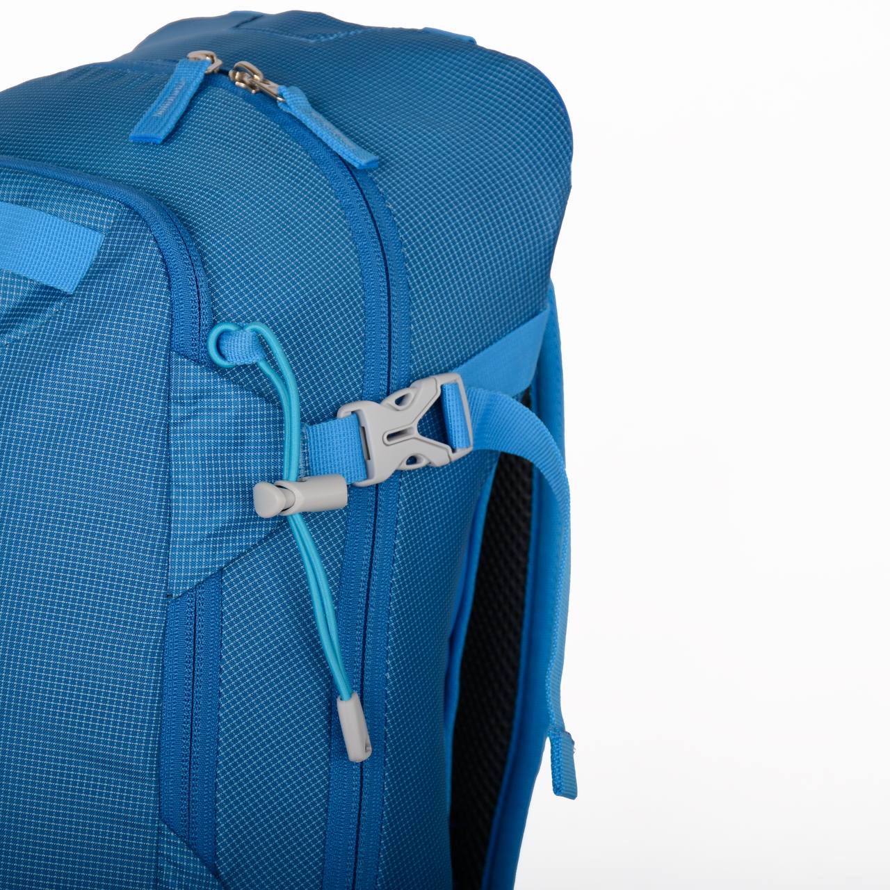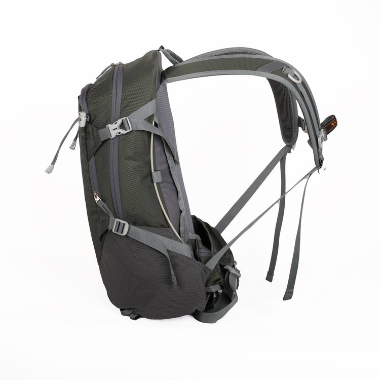 🔶این کوله پشتی دارای یک جیب زیپ دار بزرگ در جلو است که به صورت U شکل باز می شود. درون این جیب دو بخش توری مجزا برای قرارگیری وسایل ریز (مثل کارت اعتباری، نقشه یا تنقلات) و یک قلاب برای اتصال کلید در نظر گرفته شده است. علاوه بر آن دارای دو جیب توری بزرگ در دو سمت و دو جیب زیپ دار بر روی کمربند است. محفظه نگهداری کیسه آب در داخل کوله است. خروجی محفظه کیسه آب از بالا پشت سر و برای آویزان نگهداشتن کیسه آب محفظه به یک تسمه مجهز شده است. برای حمل راحت عصای کوهنوردی در دو سمت کوله دو تسمه در نظر گرفته شده است. از دیگر ویژگی های آن می توان به بند سینه قابل تنظیم، سوت اضطراری روی سگک سینه و تسمه های فشرده سازی جانبی اشاره کرد.
