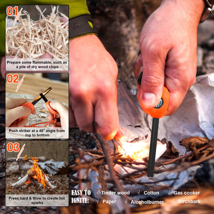 استفاده از سنگ چخماق برای روشن کردن آتش از دیرباز در بین انسان ها مرسوم بوده است. امروزه اما با پیشرفت تکنولوژی نسل جدیدی از محصولات تحت عنوان آتش زنه وارد بازار شده است که از همان سنگهای چخماق در ساخت آن ها الهام گرفته شده است. یکی از مزایای بزرگ این آتش زنه ها عدم نیاز به سوخت می باشد. این آتش زنه ها در هر شرایط آب و هوایی کارایی دارند لذا می توانند در شرایط عادی و ضروری برای روشن کردن آتش و اجاق گازی از آنها استفاده کرد .آتش زنه های SURVIVE از جنس آلیاژ منیزیم می باشند که در هر شرایط آب و هوایی کارایی لازمه را دارند و به هنگام جرقه زدن دمایی معادل 3000 درجه سانتی گراد را ایجاد می نماید ، همچنین طول عمر مفید این آتش زنه ها نیز چیزی حدود 12000 جرقه می باشد .