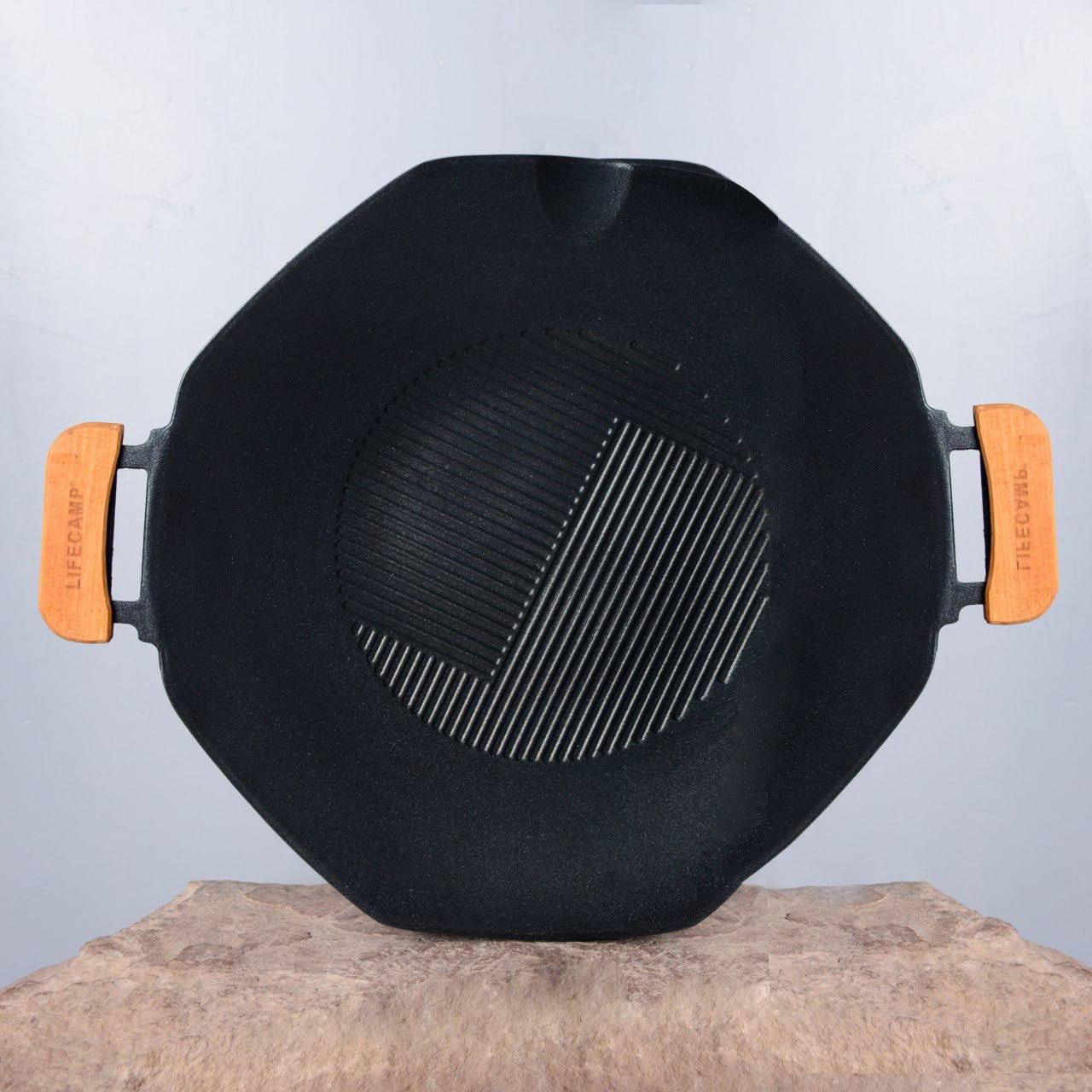 این ساج با وزن سبک و طراحی منحصر به فرد 8 ضلعی خود، بهترین انتخاب برای آشپزی در هر شرایطی است. از جنس آلومینیوم به روش دایکست ساخته شده که با روکش تفلون پوشانده شده است تا علاوه بر نچسب بودن، حرارت را به صورت یکنواخت و سریع منتقل کند. دستههای چوبی و مستحکم این ساج، حس اطمینان و راحتی را به شما منتقل میکند. این محصول با وزن 1400 گرم، به راحتی قابل حمل است. کافیست آتش مناسبی فراهم کنید و با آرامش خاطر به تهیه و پخت غذاهای خوشمزه برای 2 تا 3 نفر در طبیعت بپردازید.