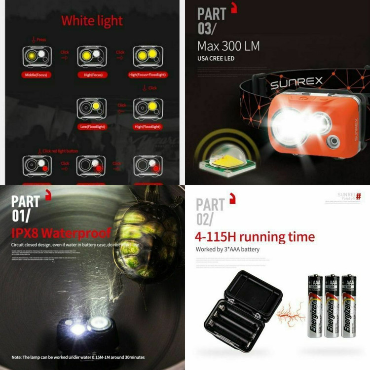 چراغ پیشانی سان ری مدل YOUDOX RED دارای چراغ SOS