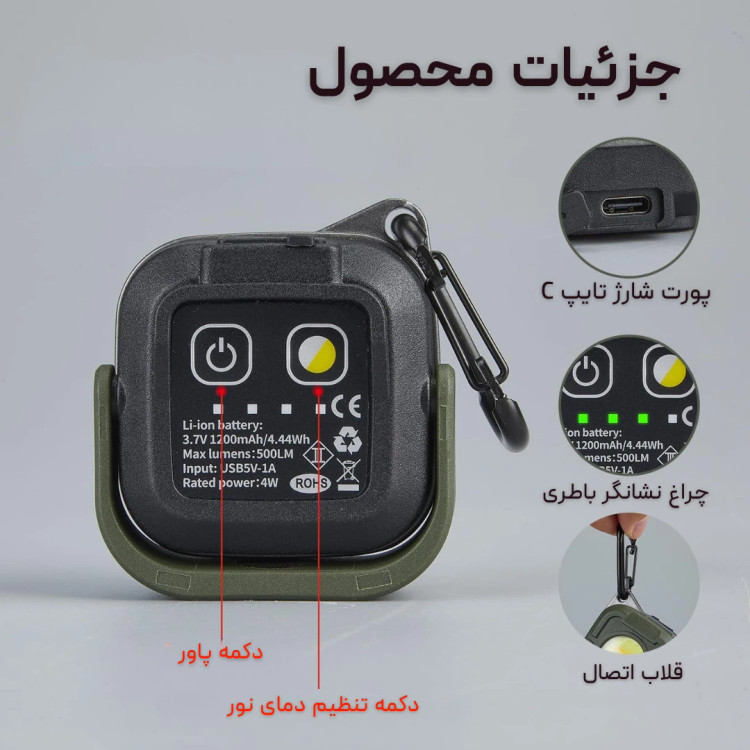 با ابعاد 3.2*4.9*4.9 میلی متر و وزن تنها 74 گرم، این چراغ به راحتی قابل حمل است و میتوان آن را به هر جایی برد. این ویژگی باعث میشود که چراغ C500 گزینهای ایدهآل برای کمپینگ، گردشگری، و حتی استفاده در خانه باشد.