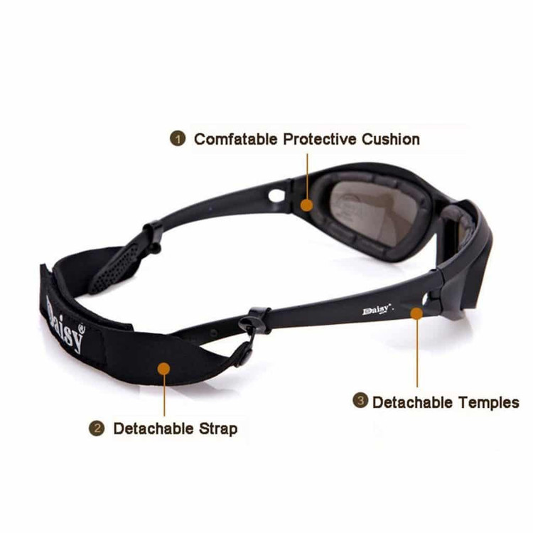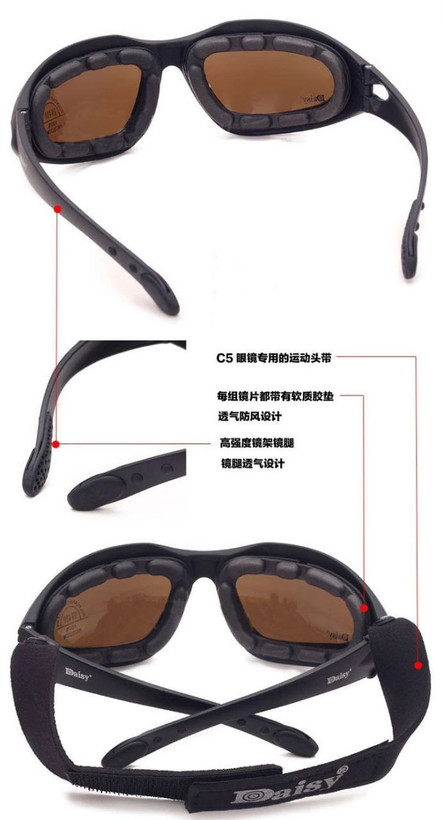🔴عینک دایزی Daisy C5 با لایه اسفنجی فشرده که داخل آن و دور لنزها تعبیه شده است، از نفوذ باد و گرد و خاک به هنگام دوچرخه سواری، کوهنوردی، شکار و سایر تفریحات جلوگیری می کند. این عینک انعطاف پذیری بالایی داشته و بدنه محکمی دارد. مطمئنا استفاده از یک عینک برای شرایط جوی متغیر اعم از آفتابی، برفی، ابری، محیط تاریک و سایر شرایط میسر نیست ولی با 4 لنز متفاوت و قابل تعویضی که این عینک دارد، این مشکل را برای شما حل می کند و شما می توانید به جای خرید عینک های مختلف برای شرایط جوی مختلف، از یک عینک daisy c5 بهره ببرید. تمامی این امکانات در یک قاب کم حجم به همراه روکش پارچه ای برای شما مهیا شده است. در این خصوص عینک مخصوص طوفان نیز قابلیتت معرفی دارد.
