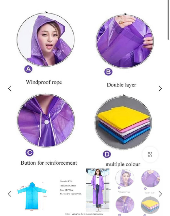 🔴این پانچو مانتویی با ضخامت 0.14 میلی متر ساخته شده و همه درزهای آن به خوبی با نوار مخصوص آب بندی شده اند و باران به داخل آن وارد نمی شود. همچنین این پانچو یکبار مصرف نبوده بلکه با کیفیت بسیار عالی که دارد، بارها می توانید از آن استفاده کنید. این پانچو در عین ضد آب بودن قابلیت تنفسی هم دارد.