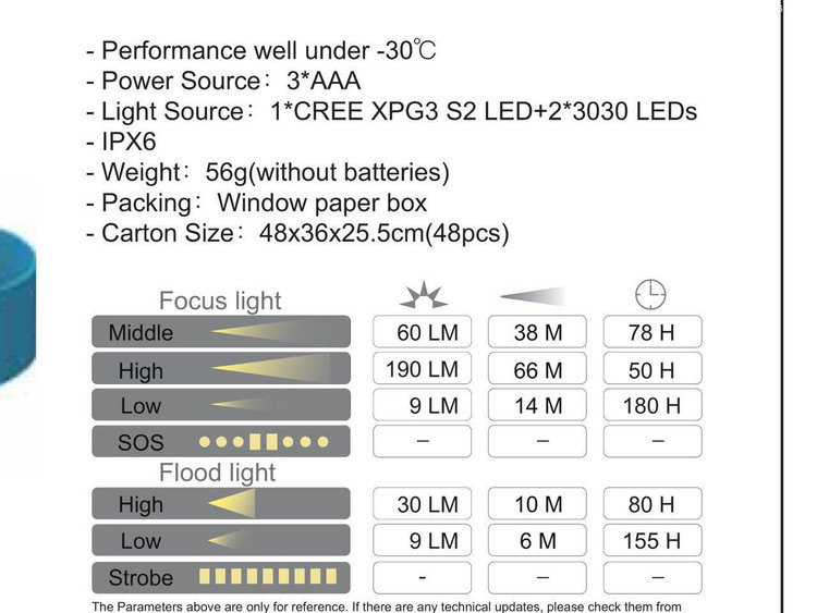 🔴ميزان حداكثر نوردهي: ١٩٠ لومن با برد ٦٦ متر و ٥٠ ساعت زمان نوردهي