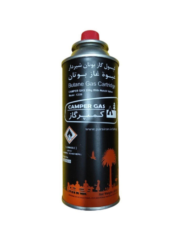 🔴کپسول گاز شیردار 220 گرمی کمپرگاز مدل C220 محصولی استاندارد از شرکت پارس ایران بوده ، این کپسول داری شیر میباشد و مخصوص کوره های دستی و اجاق گازهای همراه پارسیران و یا سایر اجاقهای مشابه مطابق با بالاترین استانداردهای ملی ایران و بین المللی توسط شرکت پارسیران تحت برند.کمپر گاز، تولید گردیده است، این محصول محتوی ۲۲۰ گرم گاز بوتان است و که بصورت کنترل شده در این نوع کپسول شارژ میشود واین مورد باعث میشود که حین سوخت شعله ای آبی و یکدست با عدم کم و زیاد شدن حین مصرف ، ایجاد نماید. در طی مراحل تولید این محصول ، تست های لازم برای حصول از کیفیت محصول به عمل آمده است.